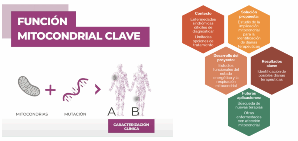 En las enfermedades raras de tipo sindrómico existe una alta heterogeneidad fenotípica, tanto intrafamiliar como interfamiliar, lo que supone un reto a la hora de diseñar terapias adecuadas a cada paciente. En algunos casos se describe diferente severidad en función del tejido afectado, haciendo más difícil en estos casos la adecuada selección de una terapia individualizada. La posible implicación de las mitocondrias tanto a nivel morfológico como funcional podría ayudar a encontrar una explicación. El grado de heteroplasmia, la distinta distribución en los tejidos y anomalías en su función podría estar detrás de esta variabilidad fenotípica. La identificación de la base molecular de esta variación o modulación del fenotipo nos podría ayudar a caracterizar mejor la enfermedad y entender su fisiopatología de tal manera que podamos diseñar terapias que favorezcan una medicina personalizada enfocada al paciente o al tejido afectado en cada caso.